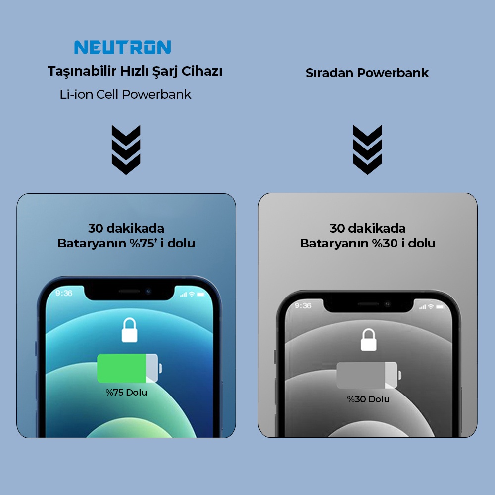 Her an, her yerde şarj ihtiyacınızı karşılayacak olan bu powerbank, geniş uyumluluk özelliği sayesinde iPhone'larınızı, Android cihazlarınızı, tabletleri ve diğer taşınabilir elektronik cihazları şarj etmek için ideal bir seçenektir.