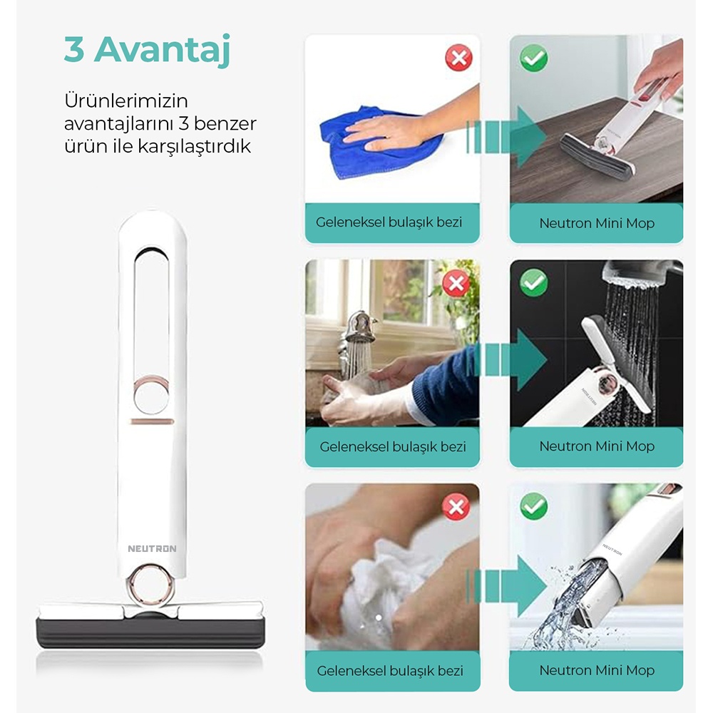 Neutron Taşınabilir Mini Mop Temizlik Paspası ve Cam Silme Aparatı